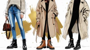 استایل نیمهرسمی: مانتوهای فیت یا پانچو با بوت چرمی ساده و کلاسیک