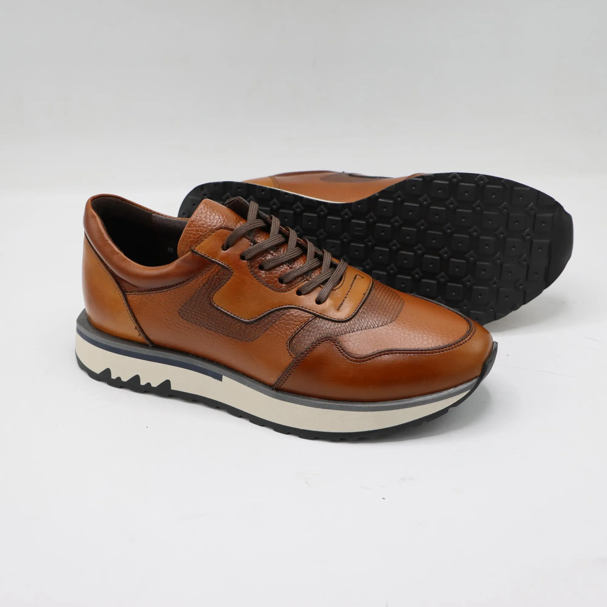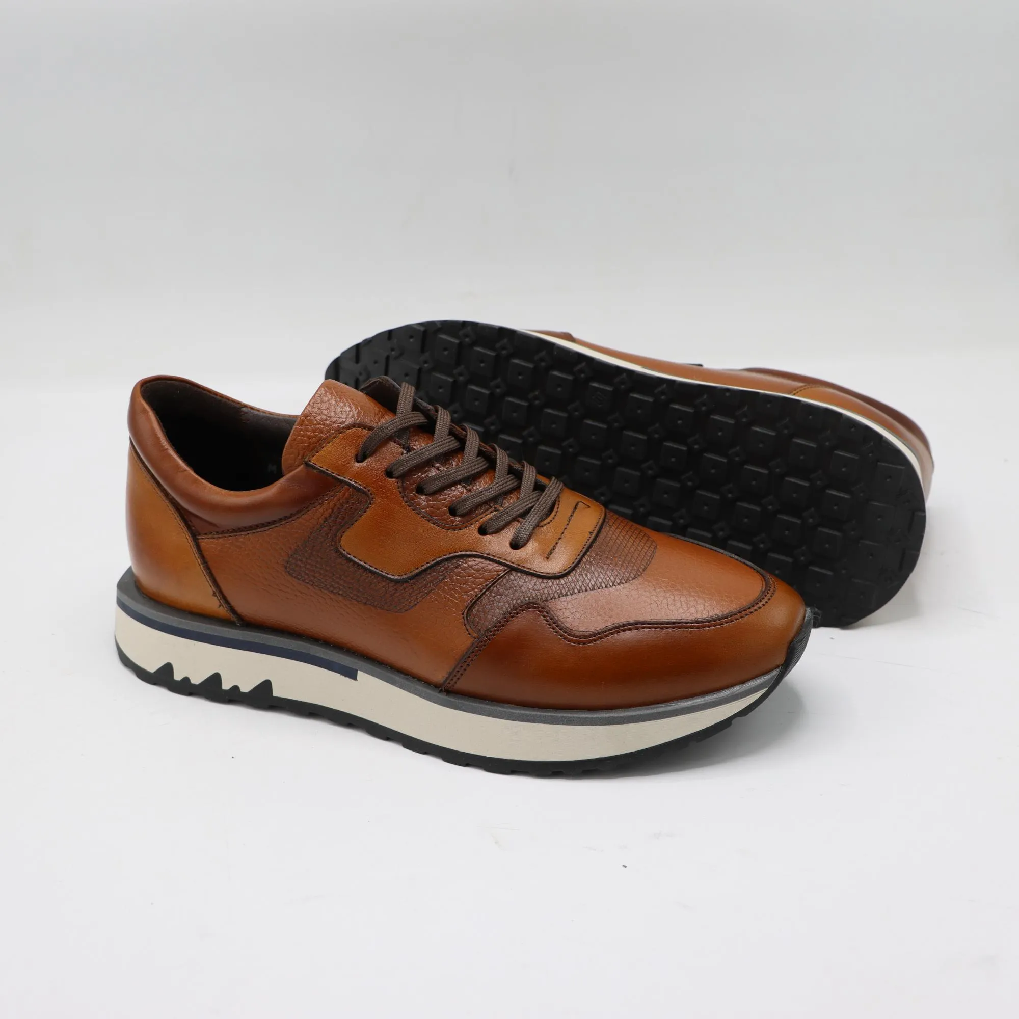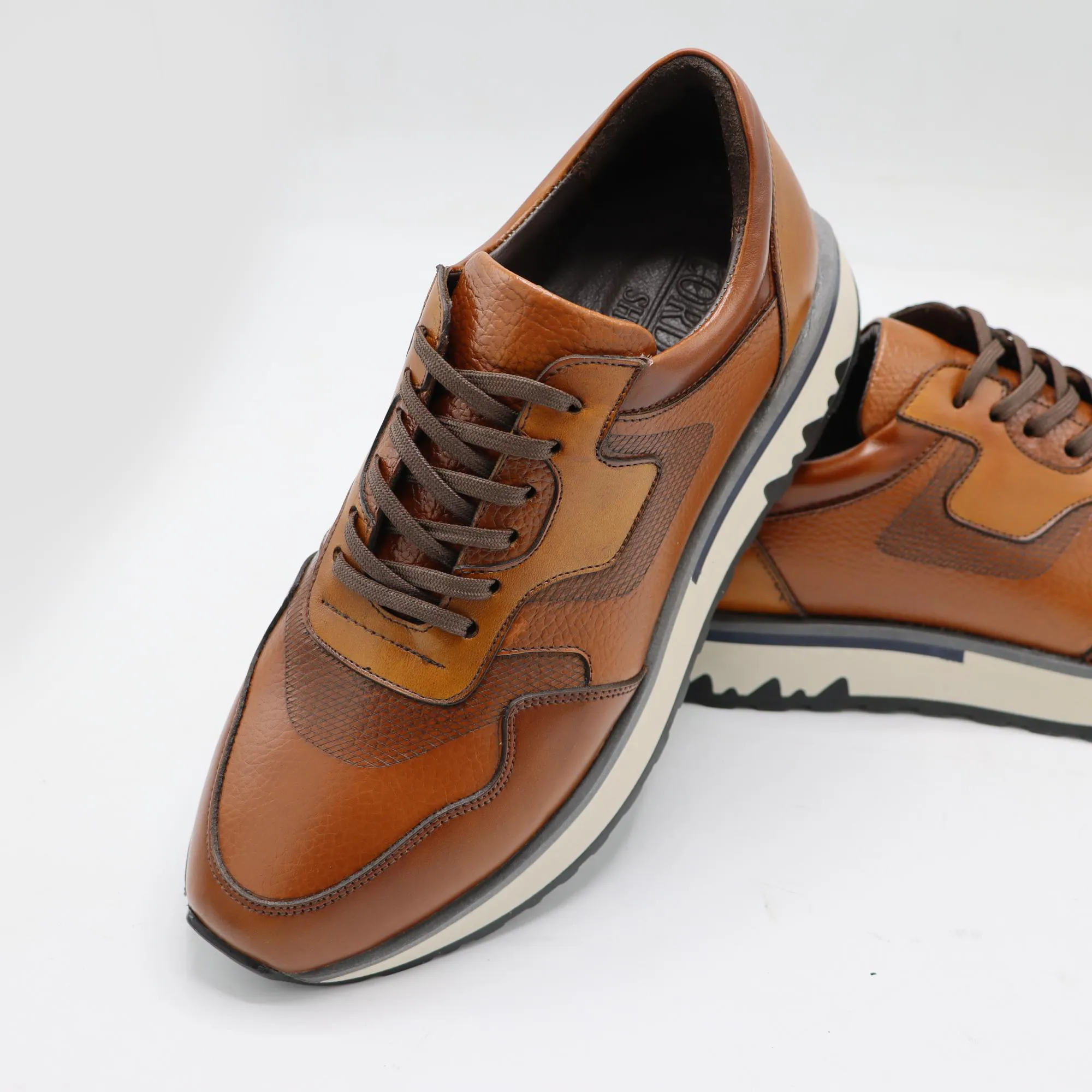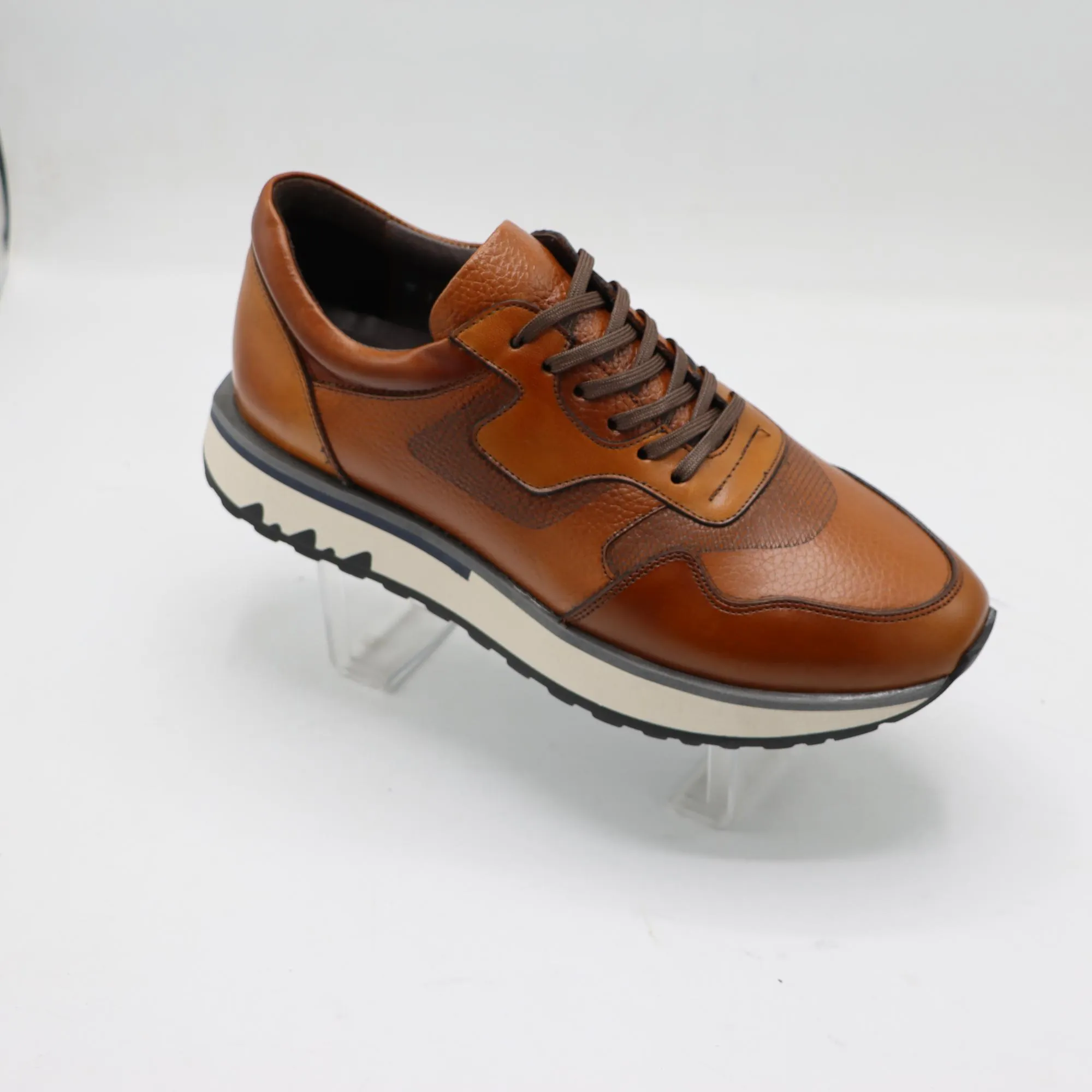 رویه کفش کایان از چرم طبیعی گاوی مرغوب ساخته شده که هم دوام بالا دارد و هم به مرور زمان زیبایی بیشتری پیدا میکند.