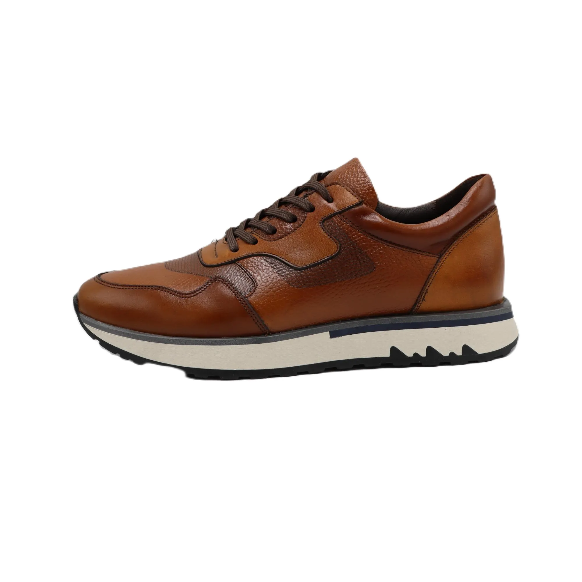 چرم طبیعی این کفش به دلیل انعطافپذیری بالا، فشار ناشی از استفاده روزانه را به خوبی تحمل کرده و شکل اولیه خود را حفظ میکند.